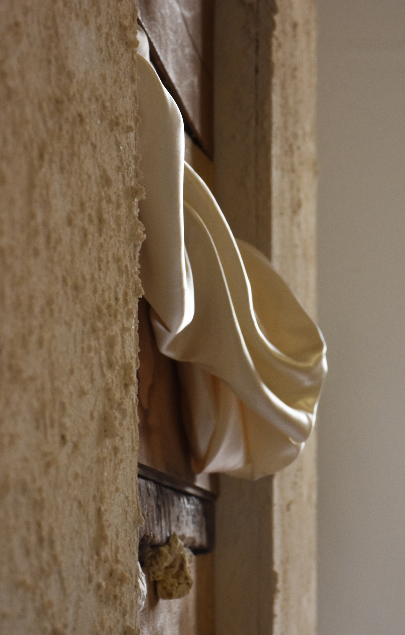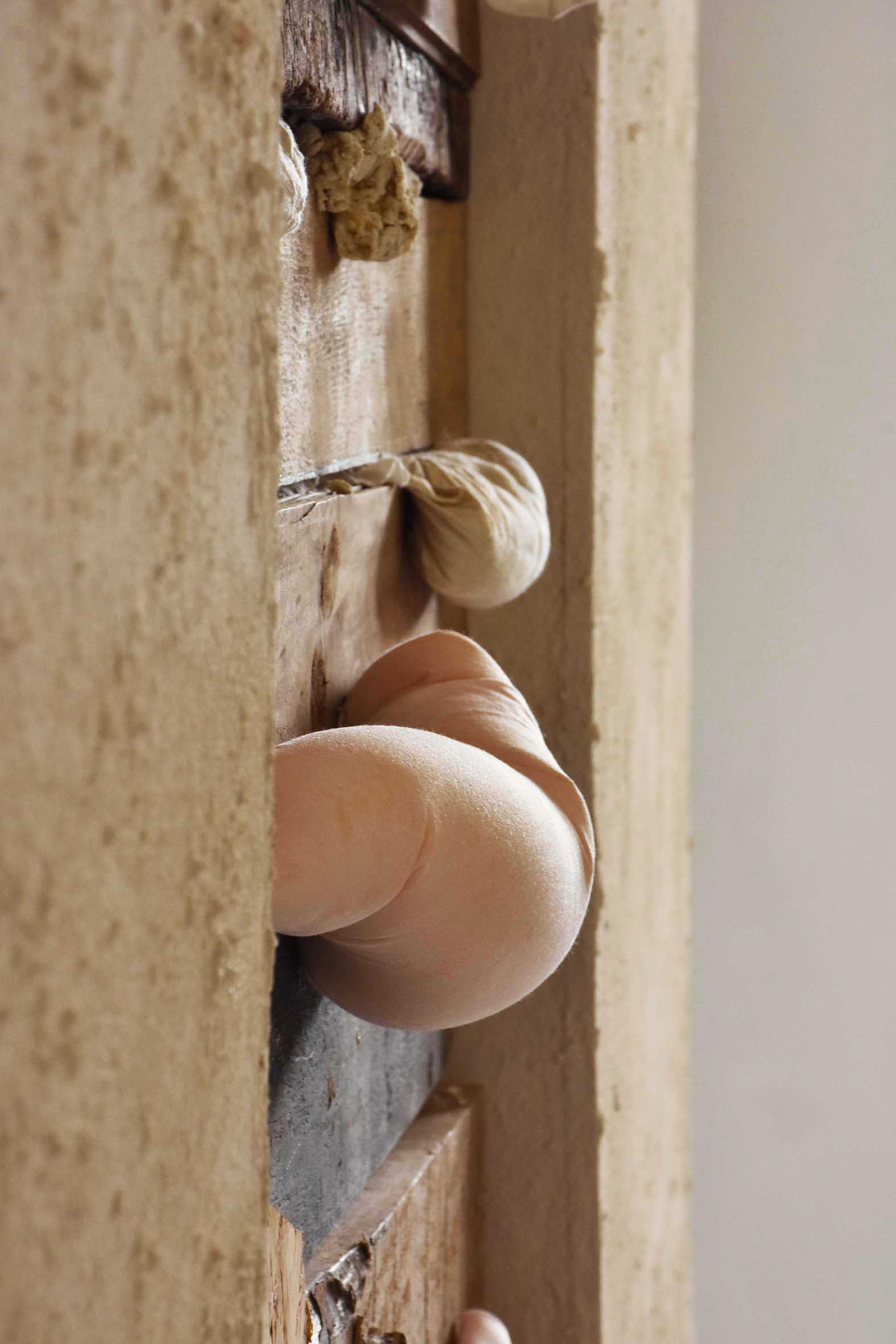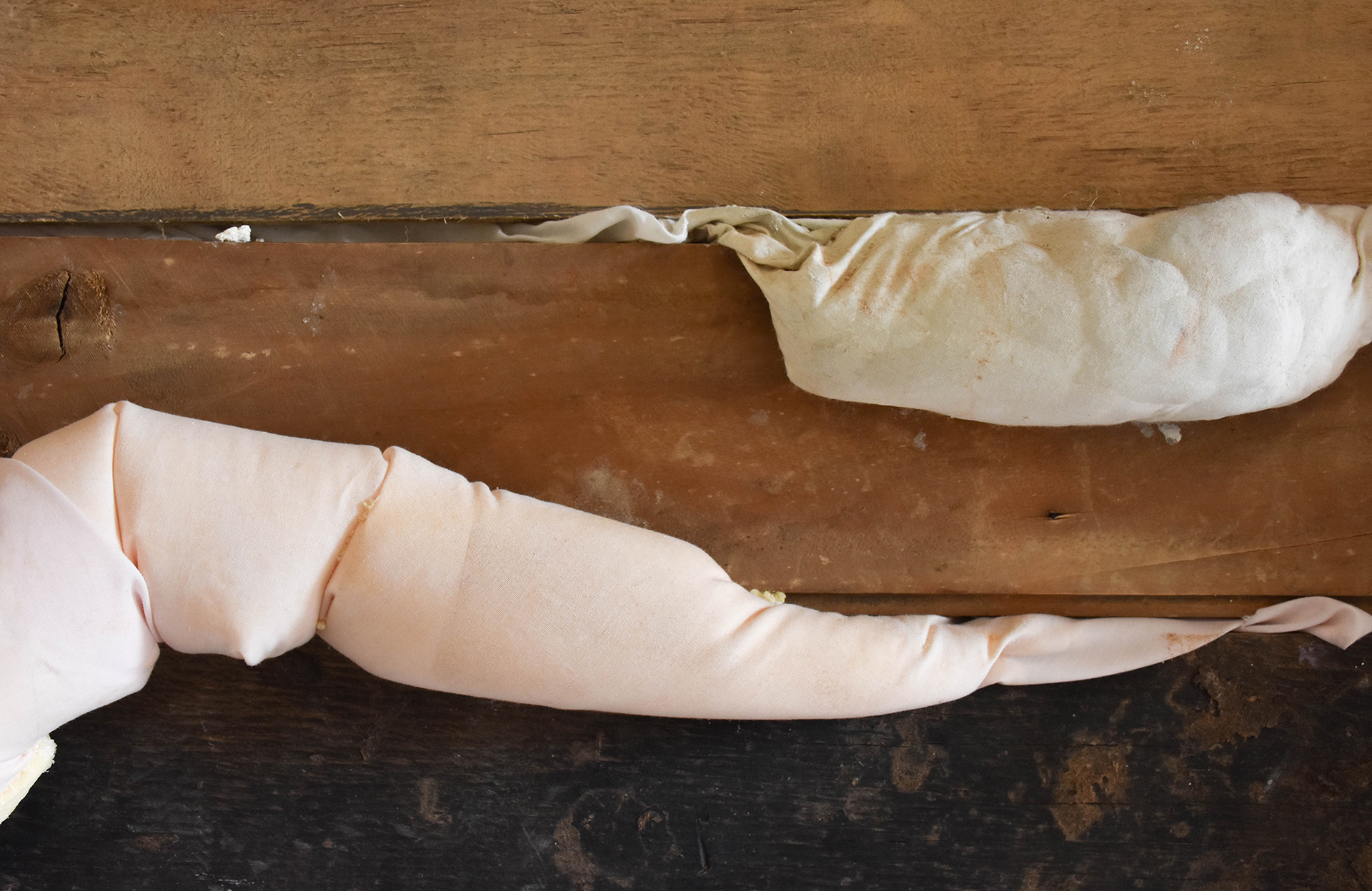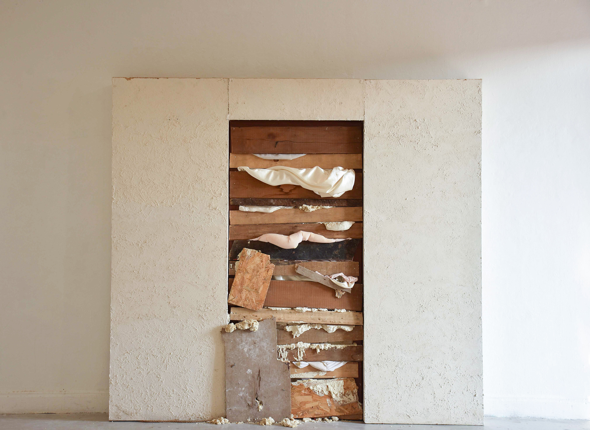 Wood, fabric, bread dough, expanded polyurethane, video, 236 x 257 x 13,5cm, 2016.